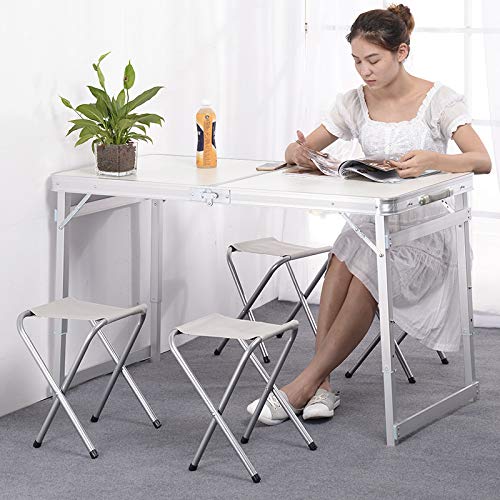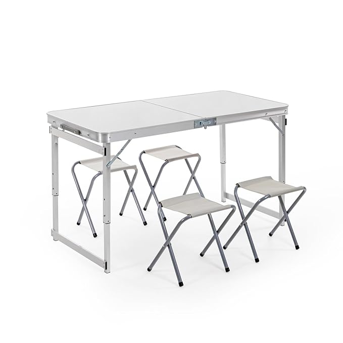 4 Feet Multipurpose Aluminium Folding Camping Table with 4 Oxford Mat Chairs & Carrying Handle | Height Adjustable Table for Picnic, Hiking, Garden, Outdoor & Indoor Use