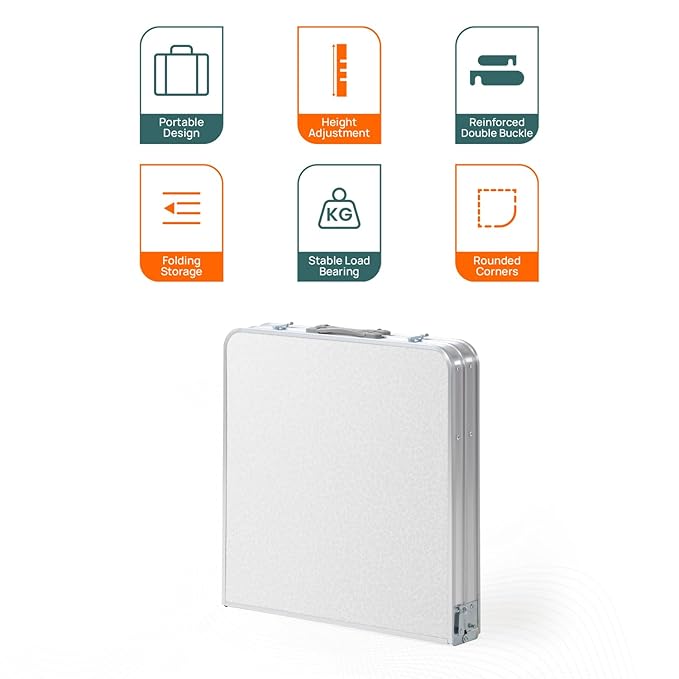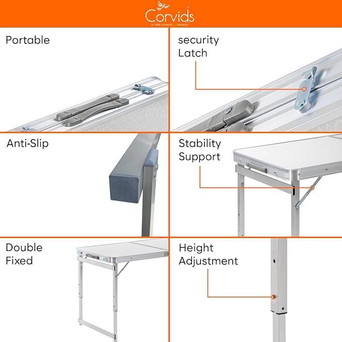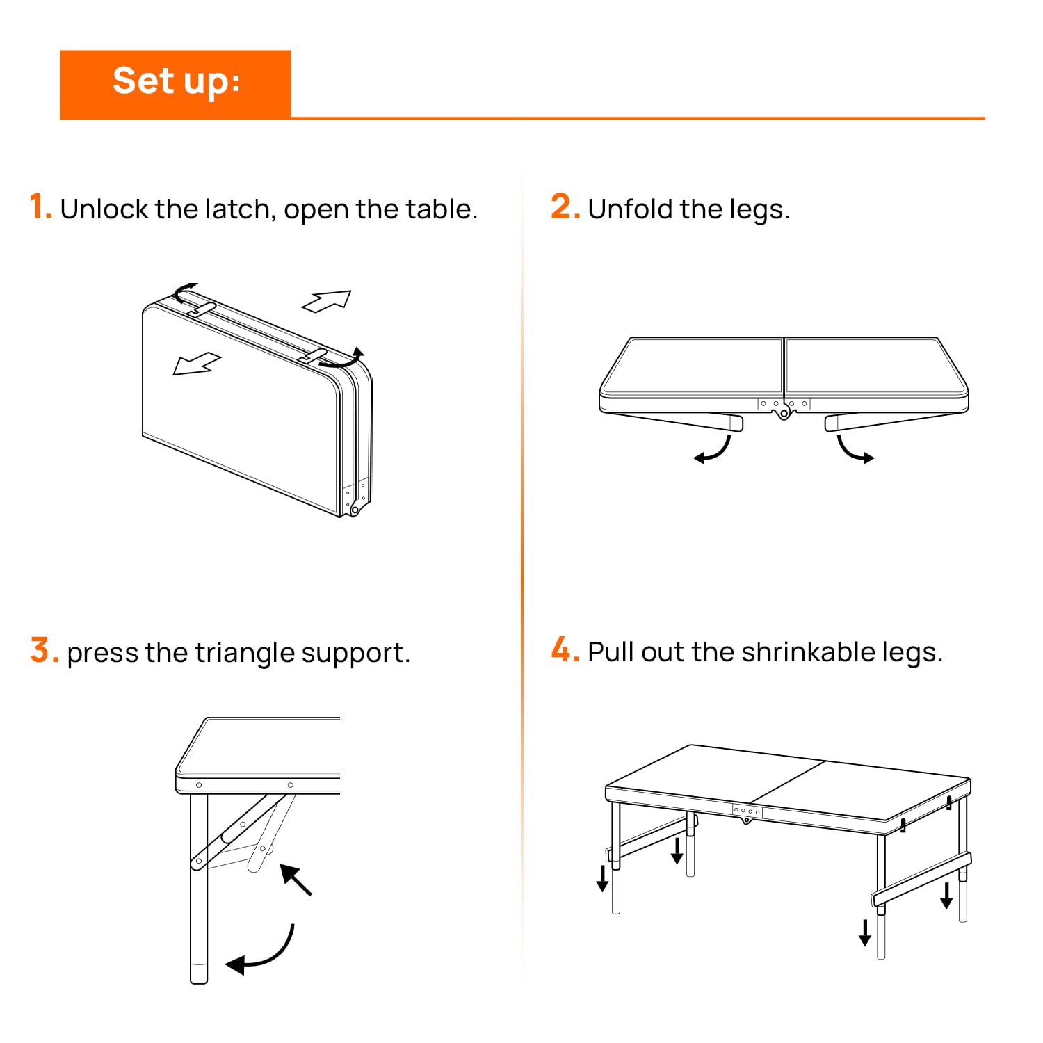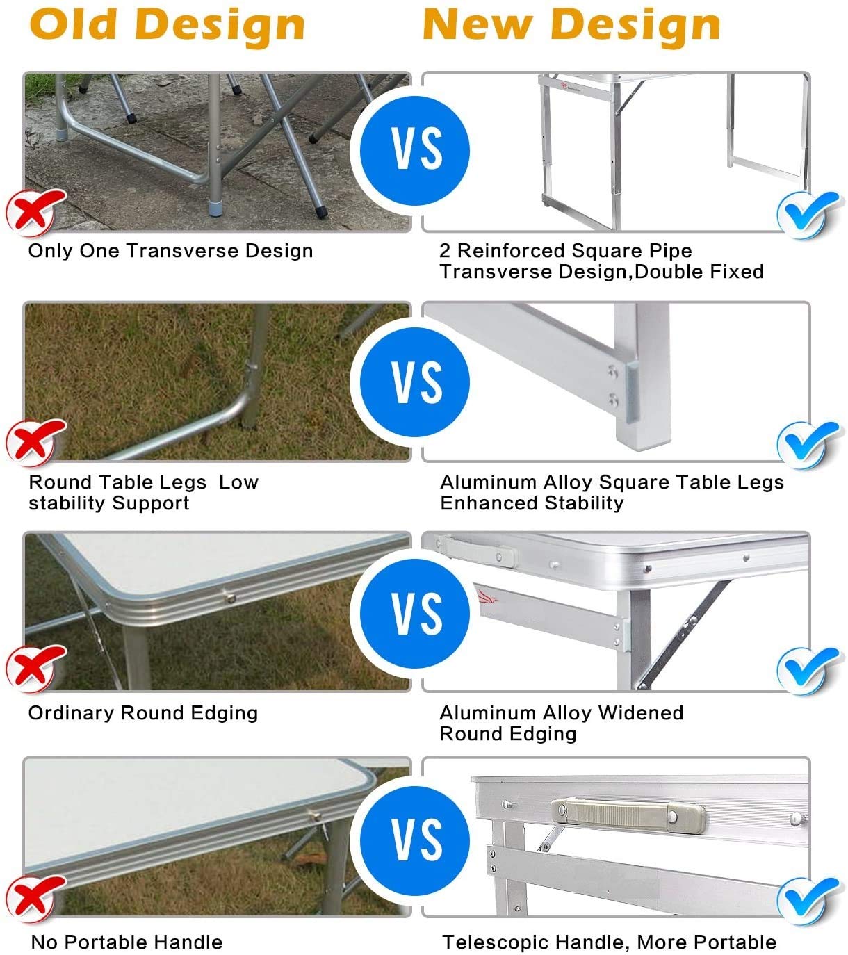Made of a Reinforced Aluminium alloy frame and Stainless steel hinge assures high strength and long durability. Stain-resistant MDF top, easy to clean with a damp cloth. Added U-shape side support and secure latch, to ensure the aluminum camping table was stable enough in use.