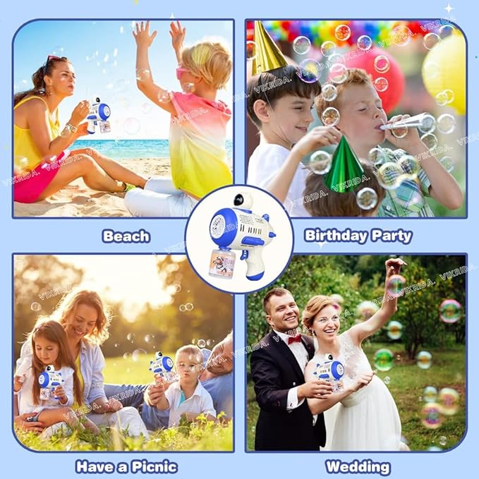 - Compare with the competition, our bubble gun made a new leak-proof design and uses strict quality inspection to ensure that the bubbles fluid does not leak.