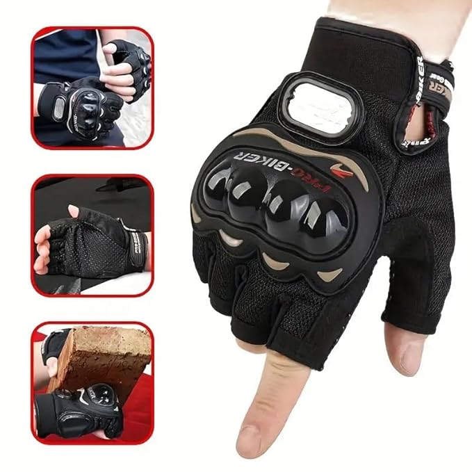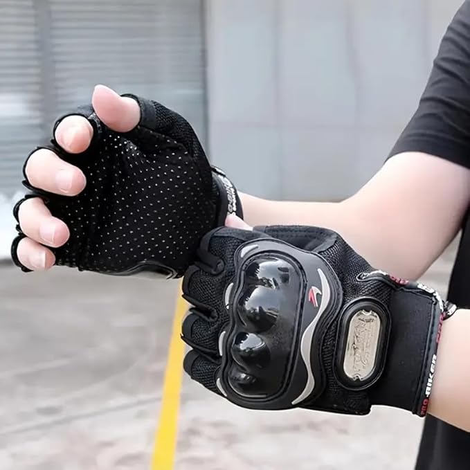Biker Gloves for Men & Women | Hard Knuckle, Half Finger, Non-Slip