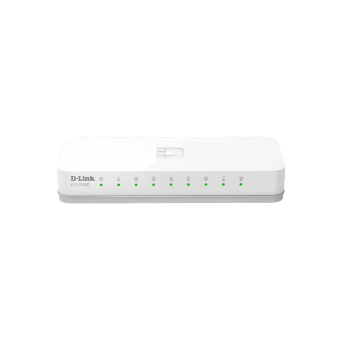 The DES-1008C 10/100 Mbps Unmanaged Switch is an economical, plug-and-play networking switch for SOHO and small and medium businesses wanting to benefit from the increased bandwidth of Fast Ethernet. It gives you eight 10/100 Mbps ports that enable you to easily expand your network and provide a quick way to upgrade your network to fast connectivity.