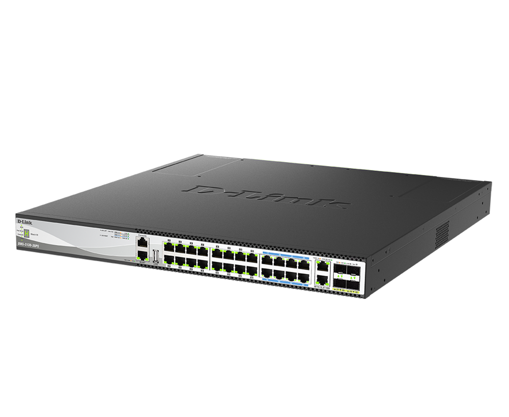 D-Link DMS-3130-30PS 30-Port Layer 3 Stackable Multi-Gigabit Managed PoE Switch
