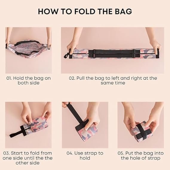 The bag is foldable and lightweight, compactly fitting into your handbag, backpack, or car, making it perfect for on-the-go convenience. The zipper closure secures your belongings, and the long strap allows you to carry it by hand or over the shoulder comfortably.