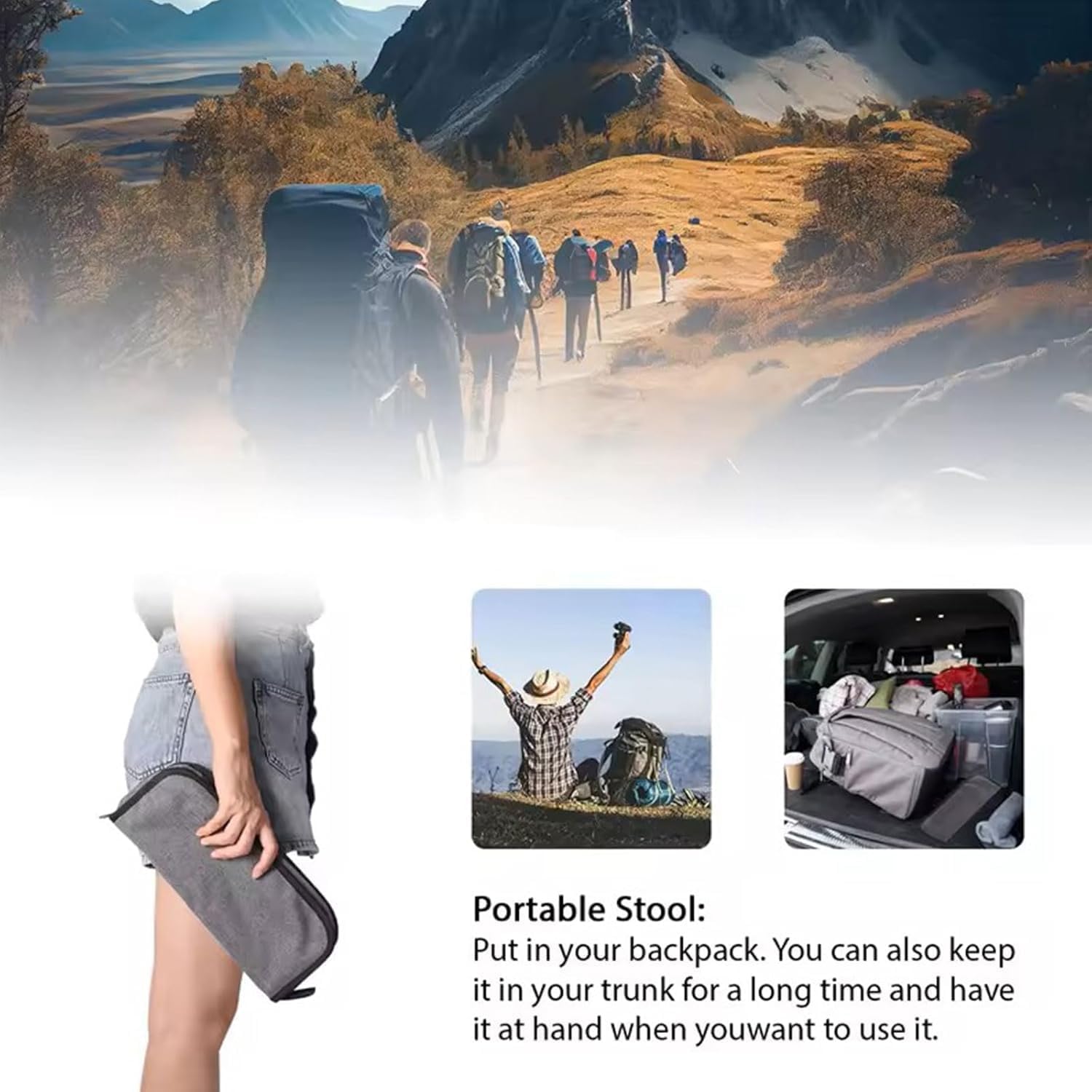 • 【Widely Use】: Portable Camp stool is for hiking, climbing, fishing, picnic, barbecue, gardening, backpacking, traveling, hunting, beach, music festivals, backyard parties, road trips, etc.