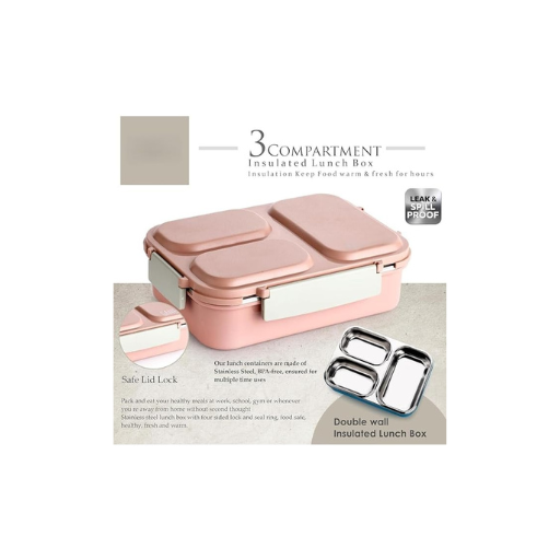 - Package Include: 1 x 3-Compartment Stainless Steel Lunch Box