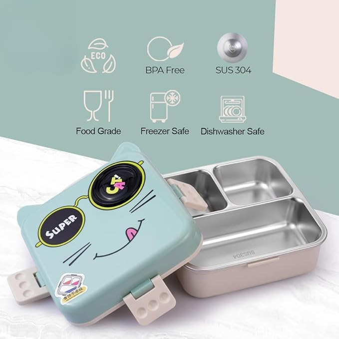 • 🌱BPA-Free & Safe: Made from high-quality BPA-free materials, this lunch box is safe for your child. The stainless steel inner layer ensures food safety, while the BPA-free plastic outer shell provides durability and protection.