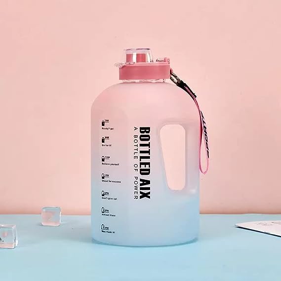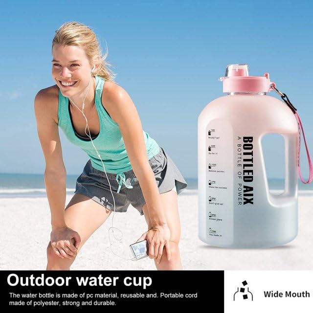 • 【BPA Free & Tinct Design】- This giant water reminder bottle is DEHP/BPA free, PET-G Plastic. It is reusable, recyclable, and saves the environment from lots of single-use plastic bottle waste. Features like a one-click push button to open easily, unique mouth opening for fast water flow and a strap for outdoor travel will make this spill proof water bottle your favorite fitness companion.